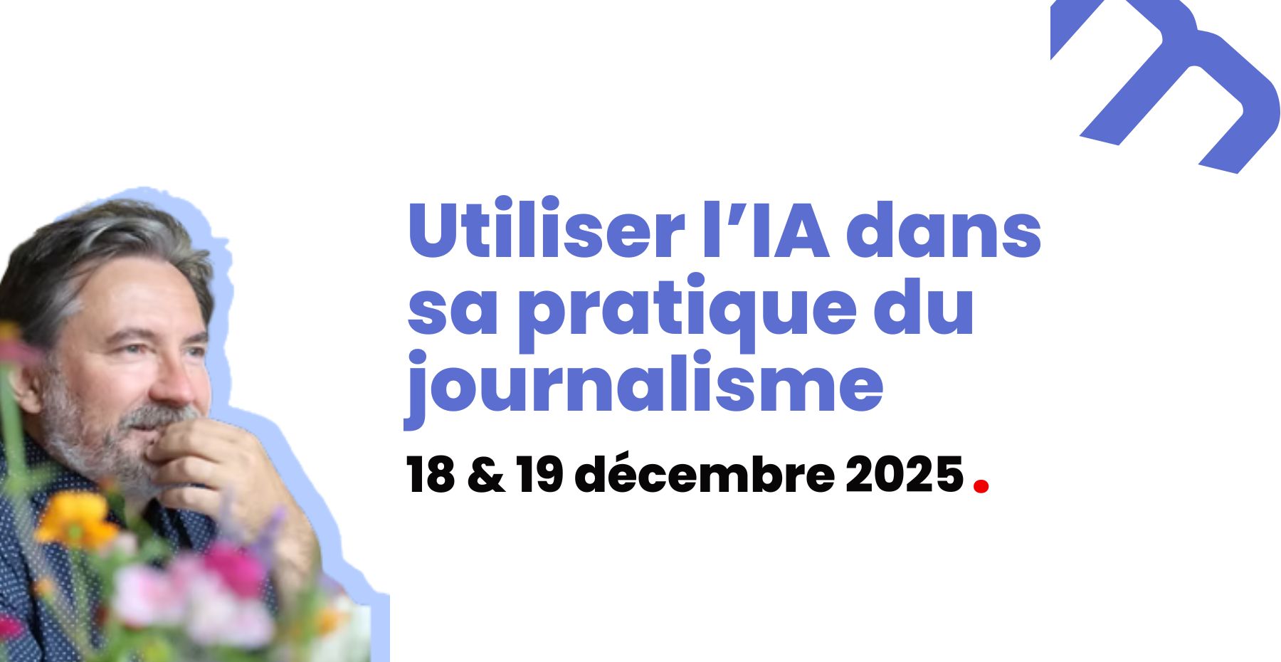 Notre prochaine formation se déroulera les 18 & 19 décembre 2025 à Nantes ou en visioconférence. Elle sera animée par Lionel Myszka, journaliste et formateur IA.